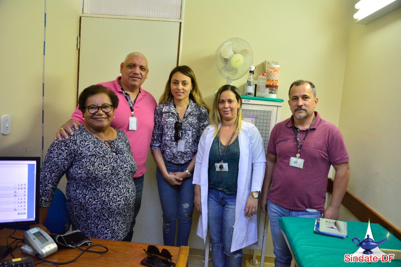 Os diretores do Sindate Josiane Jacob, Maria do Carmo e Manoel Neto, estiveram na última quinta-feira (26/07), na Unidade Básica de Saúde de Santa Maria, no intuito de resolver a superlotação, devido ao novo modelo da atenção primária, que uniu em uma unidade, várias equipes.