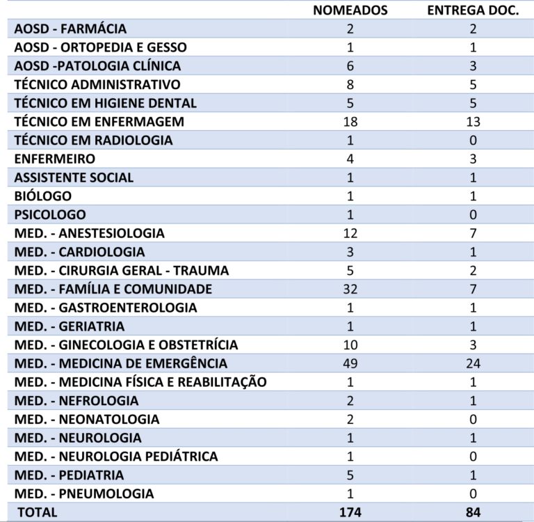 Dos 174 novos servidores nomeados em 19 de outubro, 84 entregaram os documentos e 71 já tomaram posse de forma antecipada. A previsão para esta terça-feira é que mais 13 convocados compareçam ao balcão do Nuam portando a documentação necessária.