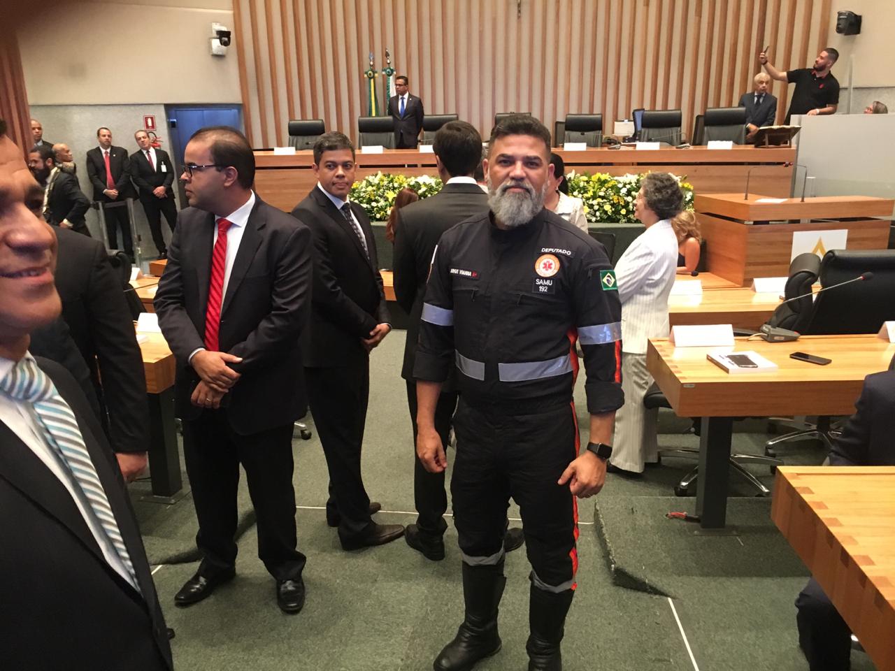 Vestido com o uniforme do Serviço de Atendimento Móvel (SAMU) ao invés do terno e gravata, o parlamentar quebrou o protocolo e surpreendeu quem estava presente na solenidade. O uso do uniforme, que continha a descrição “deputado”, foi uma forma de representar a categoria que ajudou a elegê-lo: os auxiliares e técnicos em enfermagem.