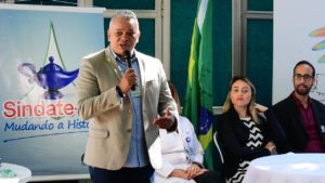 Representando o deputado Jorge Vianna (Podemos), o diretor do Sindate Newton Batista falou sobre os desafios a alcançar na enfermagem, entre eles a representação. “Nós temos hoje, dos 27 estados da Federação, dois estados com representantes da enfermagem, o DF, com o deputado Jorge Vianna, e o Rio de Janeiro. Isso nas Câmaras Estaduais. No Congresso Nacional não há nenhum representante”, disse.