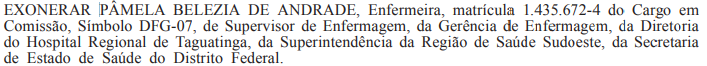 Em toda gestão, com uma liderança que faz acontecer, é comum que “em time que está ganhando não se mexe”. Com essa expressão, servidores do Centro Obstétrico do Hospital Regional de Taguatinga (HRT) reivindicam o retorno da enfermeira Pâmela Belezia de Andrade, exonerada do cargo de supervisora de enfermagem, na última segunda-feira (20).
