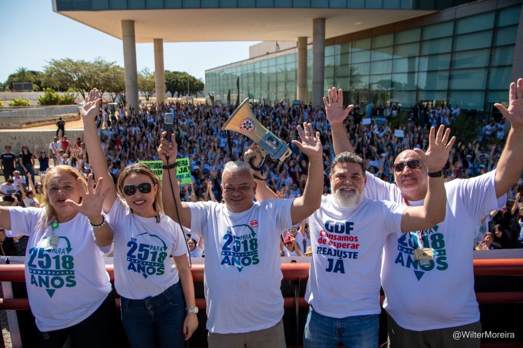 Hoje, temos o prazer de anunciar que o governo atendeu ao nosso pedido. Conseguimos uma redução na idade para progressão funcional, de 25 para 18 anos, além de um reajuste de 15%, dividido em três vezes: a primeira parcela será paga em novembro de 2024, a segunda em outubro de 2025 e a última em abril de 2026. Este ajuste também se estenderá aos aposentados, eliminando uma de nossas principais preocupações.