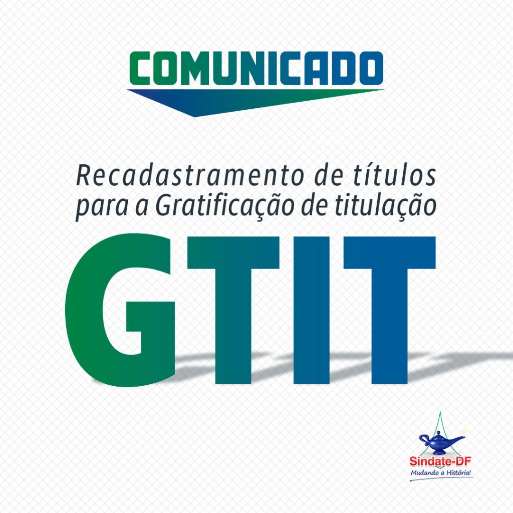 O Sindate informa que os servidores que já realizaram o cadastro de títulos para a Gratificação de Titulação (GTIT) não precisam fazer recadastramento, pois a documentação original já possui fé pública e está sob responsabilidade da Secretaria de Saúde do Distrito Federal.