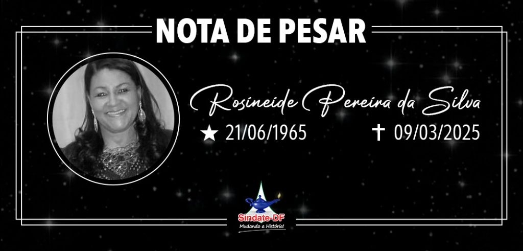 Neste momento de dor, o Sindate-DF expressa seus sinceros sentimentos à família e a todos que tiveram o privilégio de conviver com Rosineide. Que seu legado de cuidado e dedicação continue vivo em nossos corações.