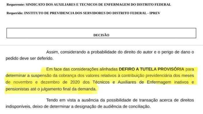 O SINDATE obteve, hoje, 10 de outubro, uma liminar que suspende os descontos retroativos de INSS nos salários de aposentados e pensionistas. A decisão foi tomada após o Instituto de Previdência do Distrito Federal (IPREV) comunicar que os valores retroativos de novembro e dezembro de 2020 deveriam ser parcelados até o fim deste mês, sob risco de desconto integral nos vencimentos.